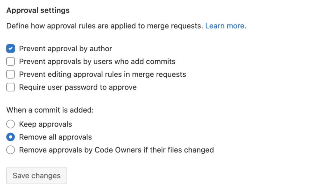 而且可以通過額外的設置還組織代碼提交者自己進行 Code Approval、組織隨意修改 Approval Rule 等,來進一步規範 Code Approval 流程: