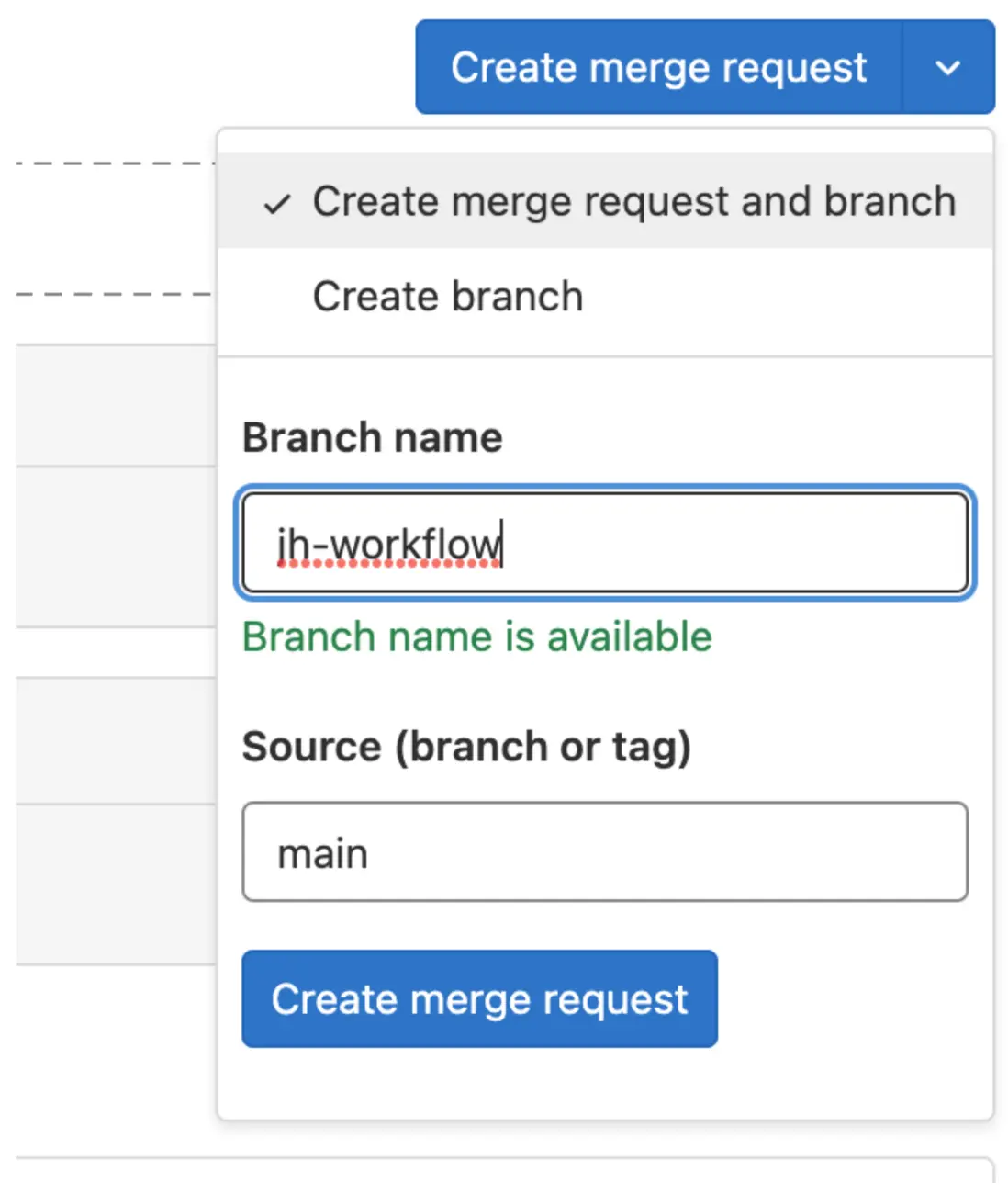 極狐GitLab Workflow 支持在 issue 創建的同時創建 MR,而且可以指定要創建的分支: