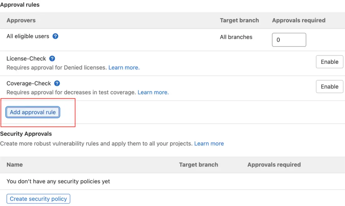 可以通過添加 Approve Rules 來對代碼的准入規則做限定: