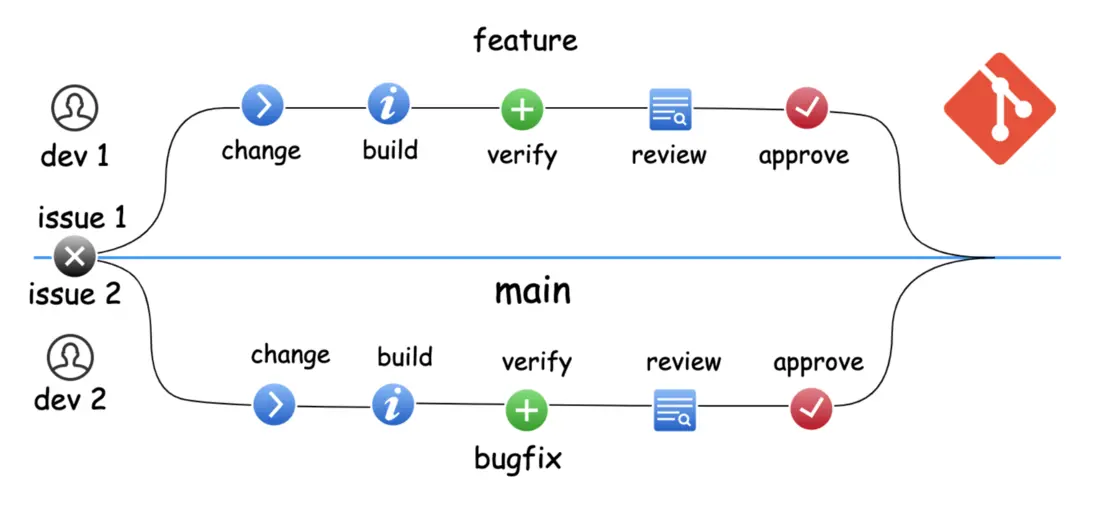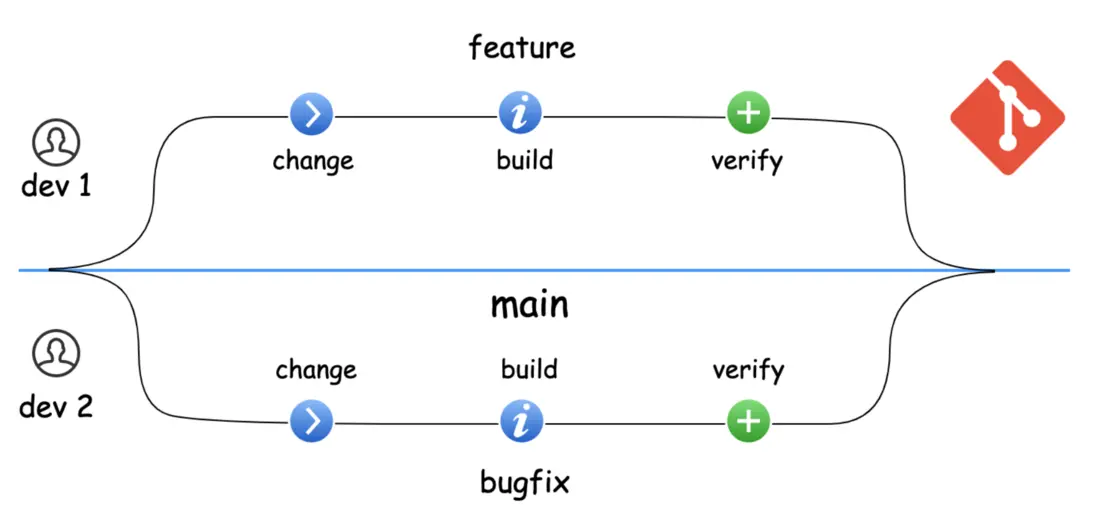 當然,隨着團隊對於 git branch 的熟悉,基於 branch 的業務開發也成為被很多團隊所採用的開發模式。開發人員不管是上線新功能還是修復缺陷,都是先創建一個新的分支,基於這個新分支完成代碼變更,經過驗證之後再合入主分支。