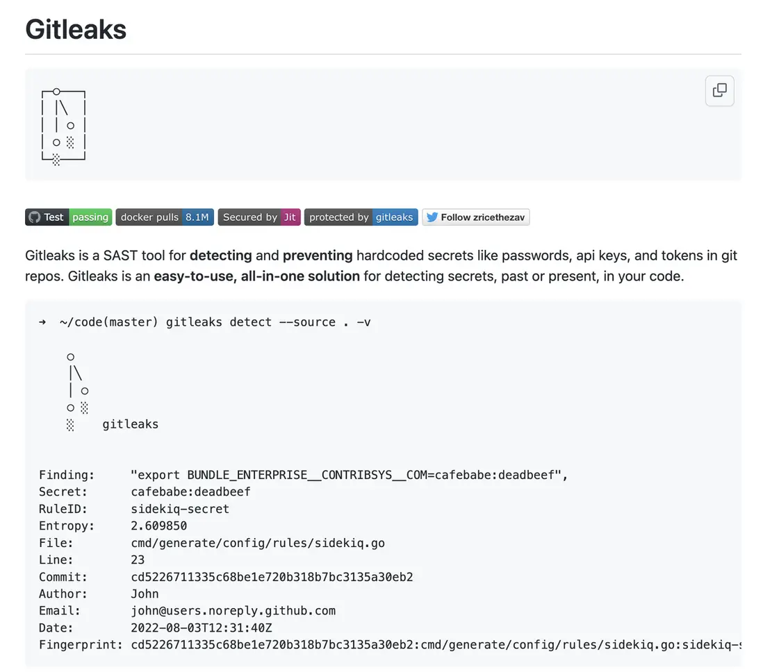 那麼,常見的安全代碼檢測工具有哪些?這裏給大家提供一個參考,就是 Gitleaks。