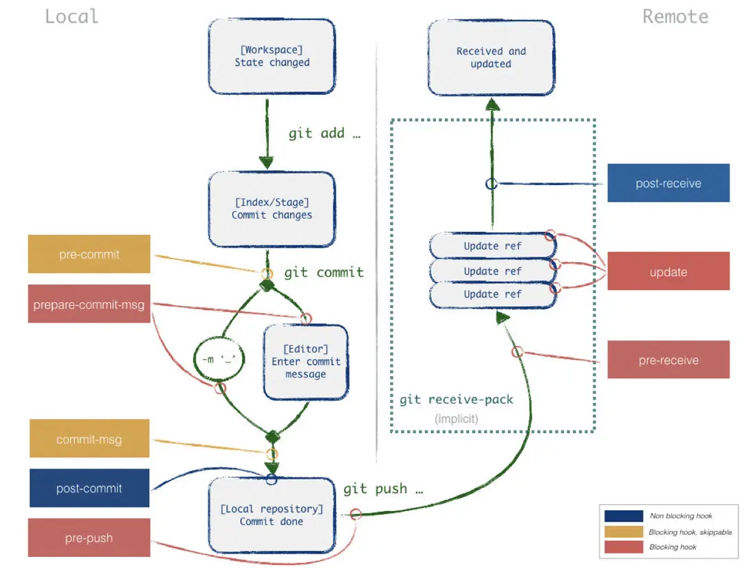 Git Hook 分為兩部分:本地和遠程,如下圖所示: