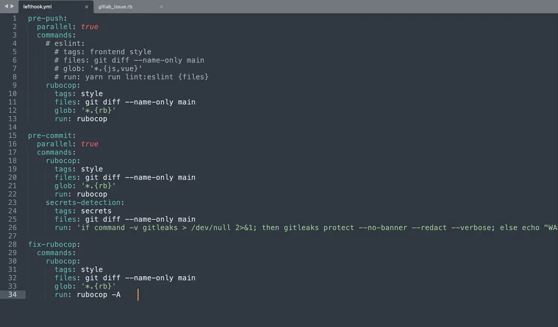 極狐GitLab 中,大概有十幾個 Lefthook 命令,在開發過程中自動發現常見問題並解決。