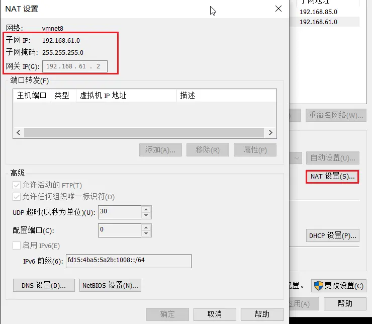 查看 NAT 中的子網 IP 和網關地址: