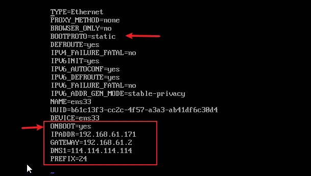 vi /etc/sysconfig/network-script/ifcfg-ens33