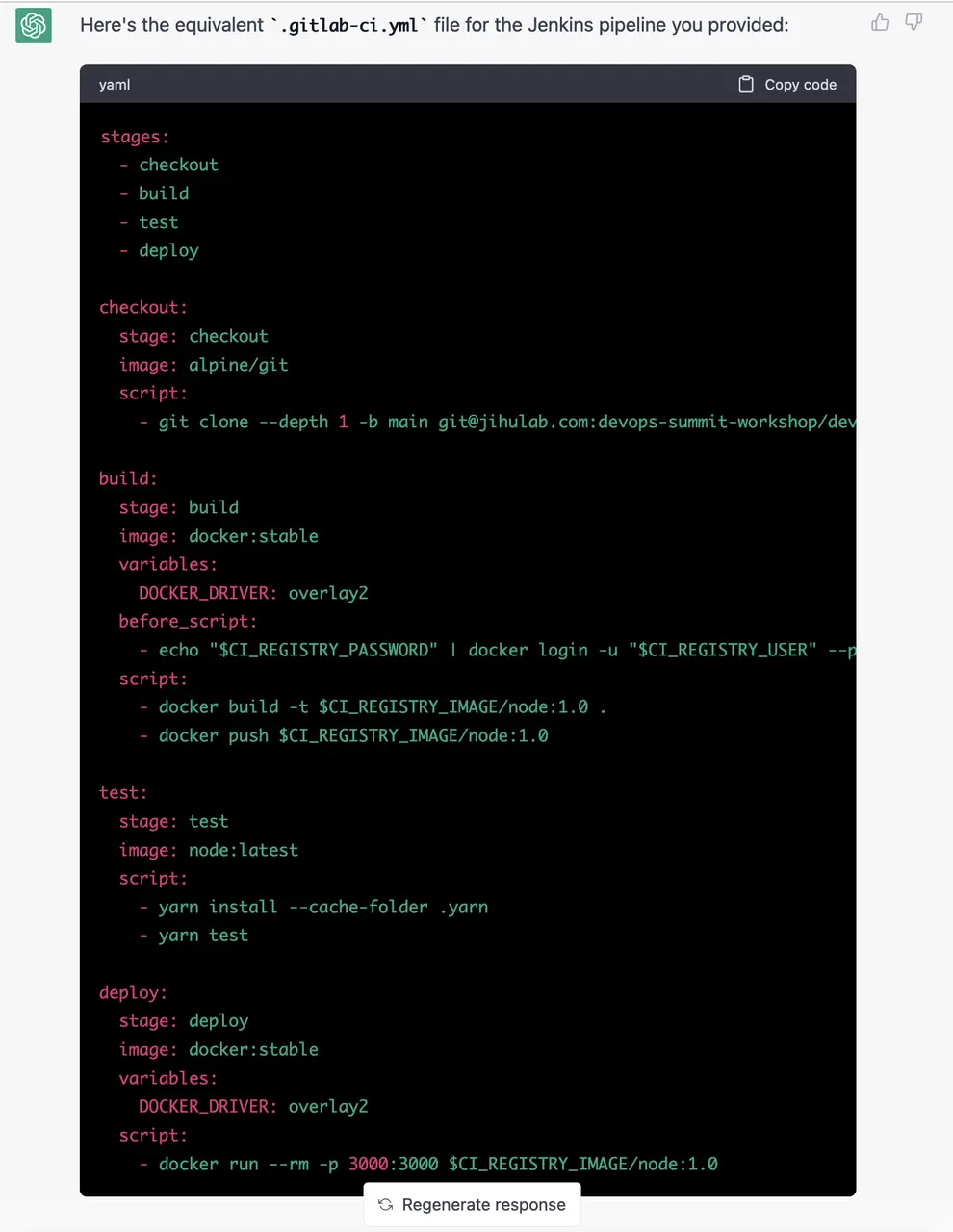 之前我們分享了 如何利用極狐GitLab CI/CD 完成 Jenkins 的遷移。今天有了 ChatGPT 的加持,可以分分鐘完成絲滑切換,Enjoy~