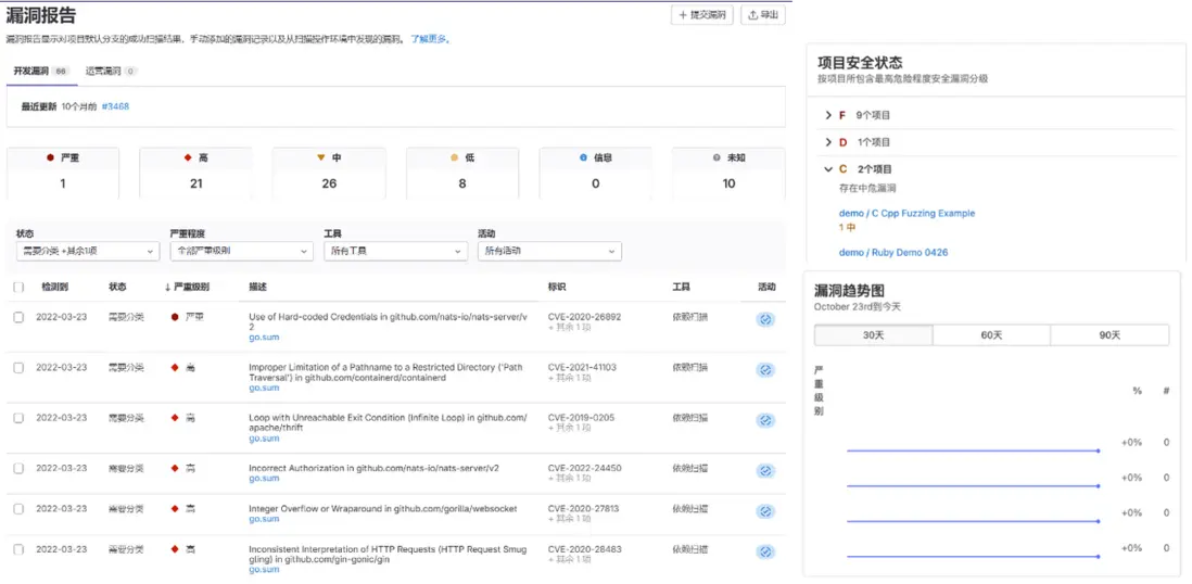 - 統一性:統一管理界面,安全規則、漏洞報告、漏洞追溯、任務分配,開展端到端的安全實踐。