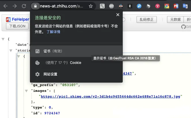 在代碼裏配置的用於「news-at.zhihu.com」域名的認證 sha256 期望是