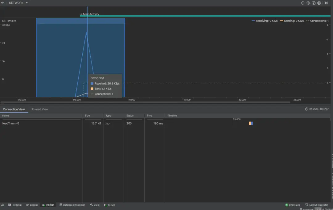 這樣我們就可以通過AndroidStudio的Profiler 輕鬆地抓取我們App 的網絡信息了。
