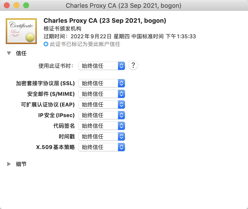 至此,安裝證書的步驟我們就完成了。