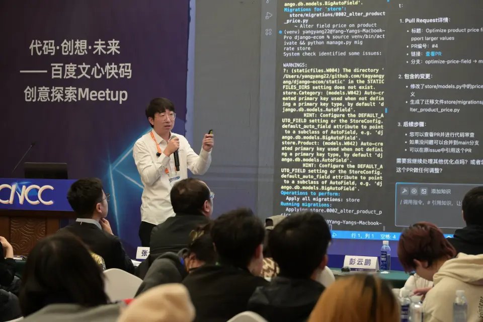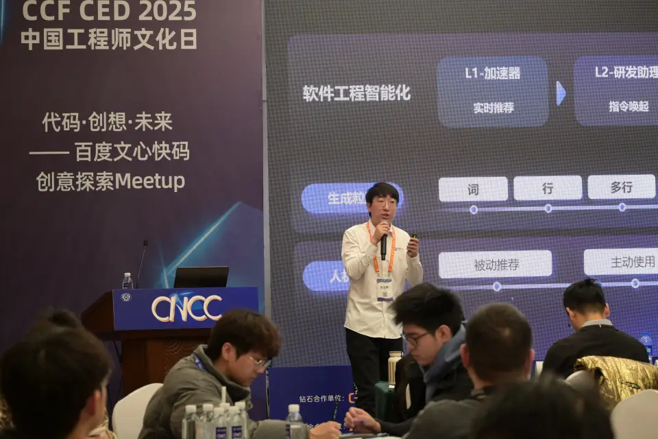 10月24日工程師文化日,CEDxCNCC百度文心快碼「創意探索Meetup」在哈爾濱圓滿落幕。作為2025CNCC中國計算機大會的分論壇之一,本次活動以“代碼·創意·未來”為主題,匯聚了數百位開發者與AI愛好者,共同開啓了一場“用代碼表達想象力”的AI Coding 英雄之旅,共同探索AI賦能下的全新編程範式。通過百度文心快碼團隊高級經理彭雲鵬和架構師徐曉強幹貨滿滿的分享,現場開發者們近距離體驗了文心快碼在代碼理解、智能補全、自定義智能體與多智能體協同開發等方面的最新能力,見證了AI從“工具”到“開發夥伴”的躍遷。