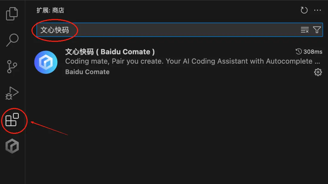 我使用的是VS Code,只需要在插件中心搜索“文心快碼” 或 “Comate”,下載最新版的插件完成安裝即可。