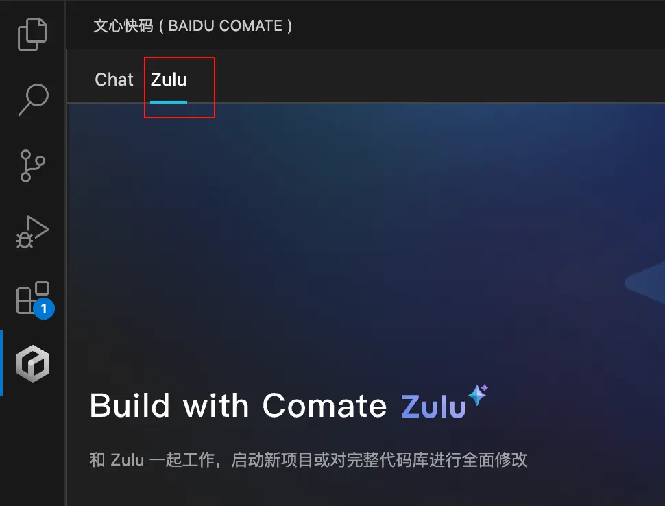 然後就可以在側邊欄看到文心快碼的圖標,點開進入,切到Zulu的tab,即可與Zulu對話。