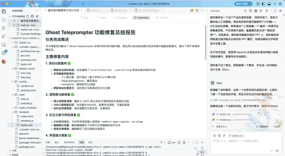 A: 強在“確定性”。 Zulu 在處理超大規模上下文時,偶爾會出現“跳躍性”思維。而 Spec 模式強制要求生成實現規格説明書。在 Spec 模式下,AI 會先列出:它打算改哪幾個文件、調用哪些現有的 API 路徑、如何處理邊界條件。簡而言之, Zulu 是“信任它能搞定”,Spec 是“看它計劃怎麼搞定,確認無誤再放行”。
