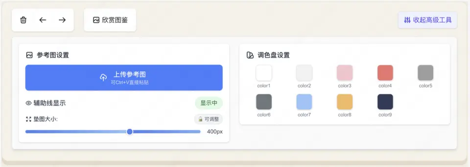 - 可以自由上傳想參考的圖片,調節參考圖大小,功能完善;