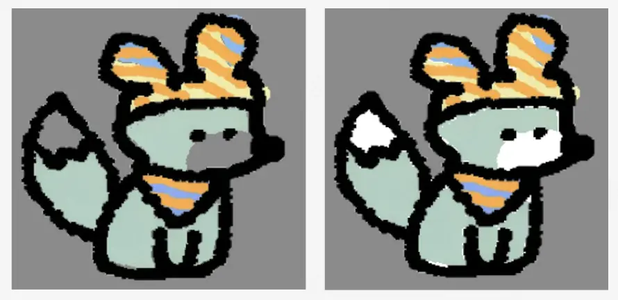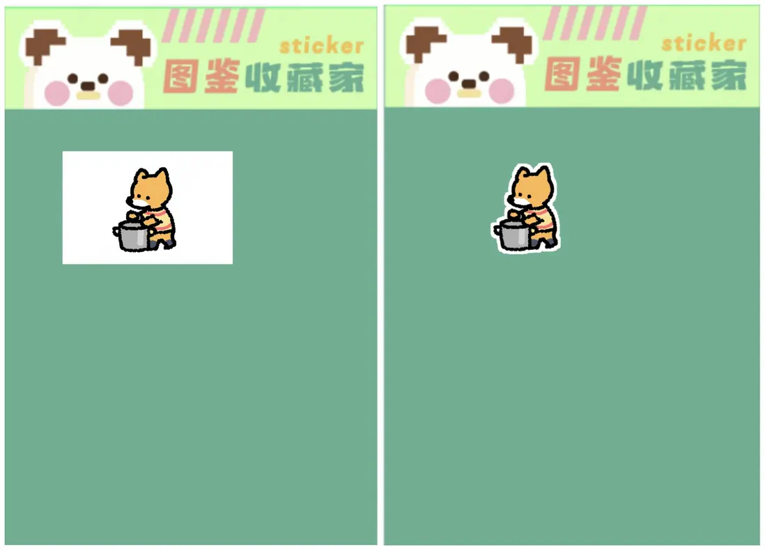 接下來是貼紙功能,我需要把用户的畫作做成貼紙等文創產品。第一步就是拿到用户的畫,但我發現因為畫板是白色的,用户不會去刻意填充白色。就會導致得到的圖片是鏤空的,非常醜陋,這種圖片能導出給用户嗎?顯然不可以。於是Comate使用洪水填充算法,幫我先把圖片的白色補齊。這個時候,導出來的是一塊矩形大圖,和畫板尺寸一樣大,放到貼紙模版裏面非常不美觀,而且佔空間。