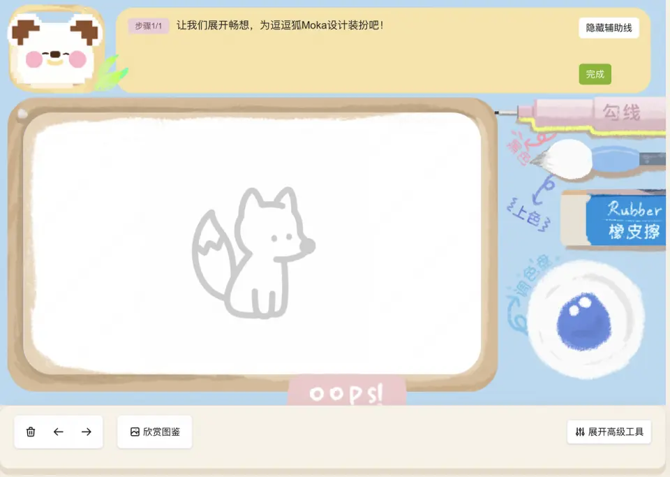 其實創意靈感在9月就想到了,比如我個人喜歡畫畫,也願意教別人畫畫,但是一個人的力量其實不算大,時間也很有限,希望有一個平台型工具,可以根據每個人的情況和基礎,給出不一樣的解決方案,這是AI能做得比較好的點。於是我想做一款兒童插畫AI輔助工具,去解決畫畫遇到的四個問題“畫什麼,怎麼畫,畫得怎麼樣,畫完之後...”。 讓整個流程串起來,畫完的作品帶着温度和意義,可以作為貼紙、表情包、明信片收藏,畫板就是這個工具的核心部分。9月底開發了一部分,由於一些技術細節實現卡住,比如筆刷抖動粗細的控制,畫完之後圖像裁剪、填充、描邊,實現效果都不盡如人意,於是進程停頓。