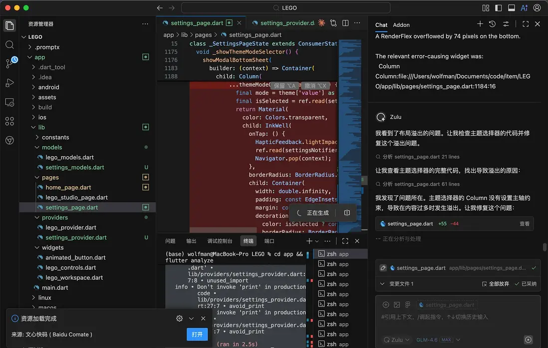 想法很美好,但現實很骨感。我是一個獨立開發者,時間和精力都非常有限。要開發一個跨平台的3D應用,需要掌握Flutter、Three.js、3D數學計算、多平台適配等複雜技術棧。更重要的是,我要如何在有限的時間內,打造一個真正符合兒童心理、操作簡單、功能豐富的應用?就在這時,我遇到了百度文心快碼(Comate),它成為了我的破局關鍵。