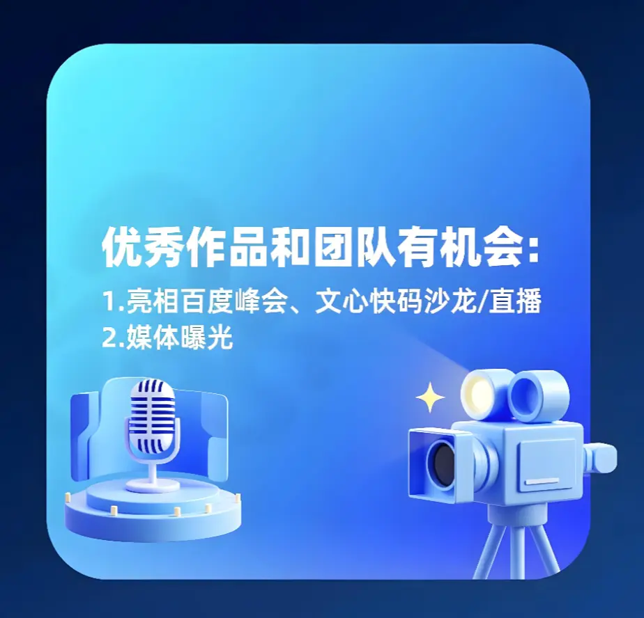 提交優秀作品,即有機會瓜分超10w元獎金💰!更有機會享受企業實訓直通、行業峯會亮相、媒體曝光等全⽅位的資源與服務,助你從活動走向更廣闊的舞台!