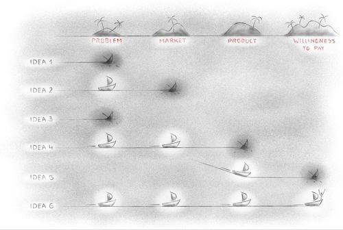 As you’ll see, many of your great ideas will fail early in the process. Finding out that the problem you’re trying to solve is simply not a problem that users are really bothered by is incredibly common. But with perseverance and iteration, you’ll eventually come up with a product idea that validates.