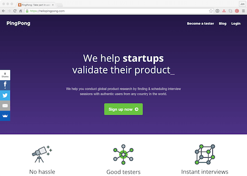 Consider another example from the real world. Suppose we built PingPong, to help users gather feedback and conduct interviews. The technology behind the product is not incredibly complex, but a decent investment in design and development is required nevertheless in order to launch a strong product. A lot of work goes into a successful product, but at this early stage, we still have a lot of unvalidated assumptions about what users really want.