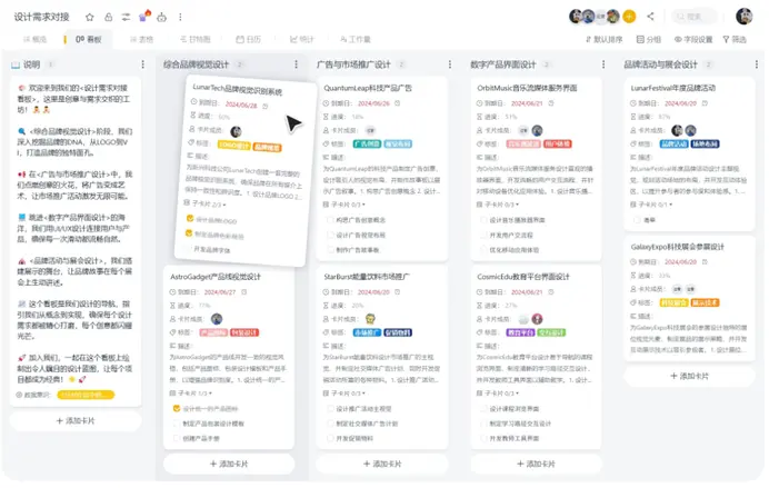 對於大多數團隊而言,板栗看板是一個理想的入門選擇。它以看板(Kanban)方法為核心,用“待處理-進行中-已完成”這樣直觀的列來管理任務流。每個任務都是一張獨立的卡片,可以拖拽移動狀態、添加詳細説明、設置截止日期、分配負責人、上傳附件。這種簡單直接的界面讓團隊成員能夠快速上手,特別適合需要頻繁調整和快速響應的項目。板栗看板的優勢在於其靈活性——團隊可以根據自己的流程定製列結構,為不同類型的項目創建模板,建立符合自己工作習慣的可視化系統。它就像團隊工作流程的“數字鏡子”,讓每個人都清楚地看到當前的工作狀態和下一步的行動方向。另外,還能切換甘特視圖、表格視圖、日曆視圖,適用於任務管理與分配、資源調度、進度跟蹤、和客户管理等多種場景,為需要處理和展示結構化信息的場合提供清晰、高效的數據管理與可視化呈現。