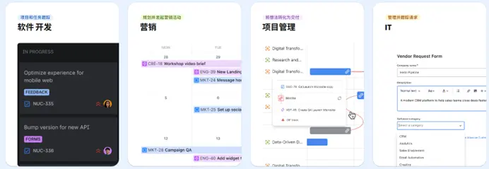 Asana在設計上巧妙地平衡了靈活性和結構化需求。它提供了列表、看板、時間線、日曆等多種視圖,讓團隊可以根據不同項目的需要選擇最合適的可視化方式。對於創意類項目,可以用看板視圖管理靈感和任務;對於時間敏感的活動,可以用時間線視圖規劃排期;對於資源密集型項目,可以用工作負荷視圖平衡團隊分配。Asana還特別強調項目模板的複用,企業可以將成功的項目模式固化為模板,快速啓動類似項目。它的界面設計注重用户體驗,使得跨部門協作更加順暢,適合需要平衡創意自由與執行紀律的團隊。