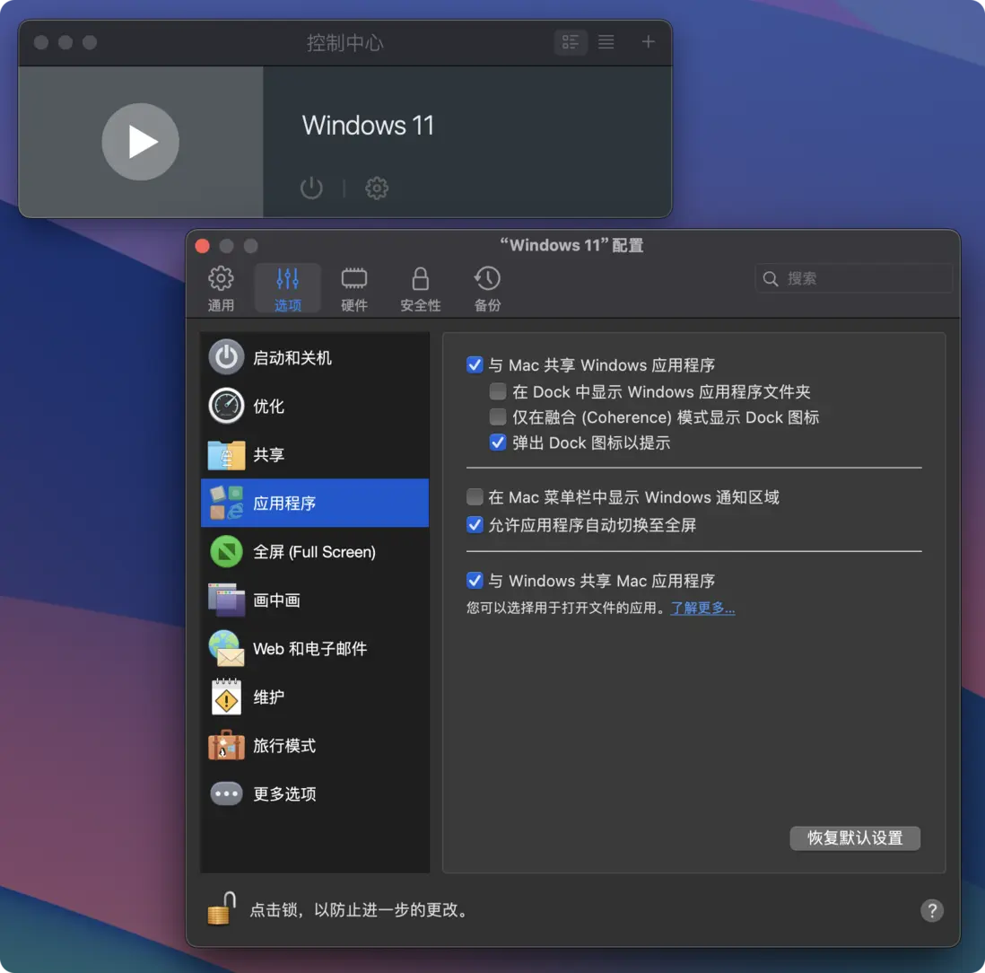 融合模式,應用和直接使用 mac 的應用沒任何差別