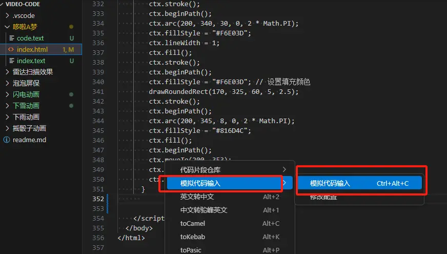 如上圖,看着是和手打一樣逐字輸入的效果,但其實是通過vscode插件來自動輸入的,可以用於視頻錄製時重現代碼實現過程。