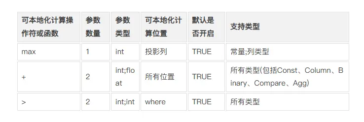 ① 可本地化執行操作:表示這個表達式的操作符能否在時序引擎本地化計算;