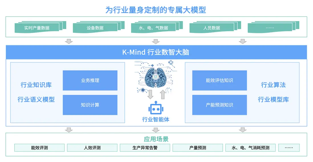 K-Mind 正以 "快、省、準、深" 為核心,構建企業 AI 工程化落地的 "高速路"------"快" 即模型訓練快、業務落地快,大幅縮短數智化轉型週期;"省" 即省資源、省人力,通過高效資源調度與自動化運維降低成本;"準" 即行業適配準、經驗沉澱準、模型預測準、業務結果準,貼合企業實際需求;"深" 即縱向深耕電力、石油、天然氣、水務、礦山、冶金等領域,橫向拓展輔助交易決策、故障診斷、智能運維等場景,實現全產業、全鏈路的智能升級。