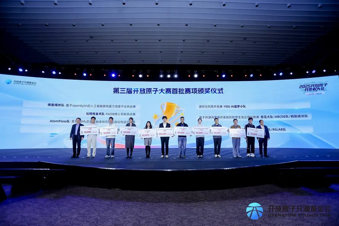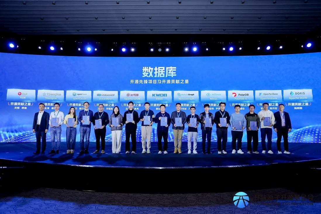 11 月 21 日,2025 開放原子開發者大會開幕式上,KWDB 憑藉技術創新力與廣泛的社區影響力榮獲數據庫領域“開源先鋒項目”,KWDB 社區 TOC 成員竇志彤榮獲“開源貢獻之星”並受邀參與論壇分享,“KWDB 核心貢獻挑戰賽”一等獎獲獎團隊受邀參與第三屆開放原子大賽首批賽項頒獎儀式。