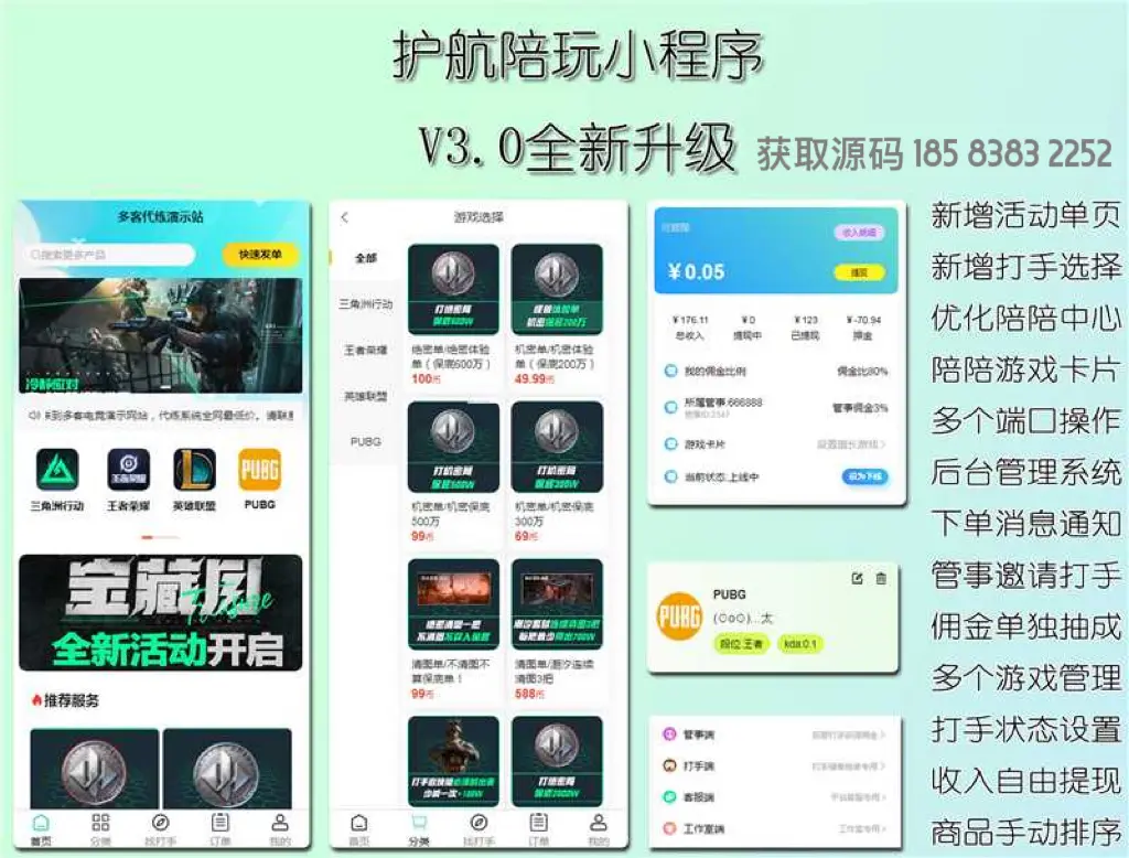 通過Uni-app框架實現微信小程序、H5、APP、PC端四端同步,支持一鍵打包生成多平台應用。例如,玩家可在手機端快速下單,代練通過PC端接收高精度地圖指令,管理端通過H5實時監控訂單進度。