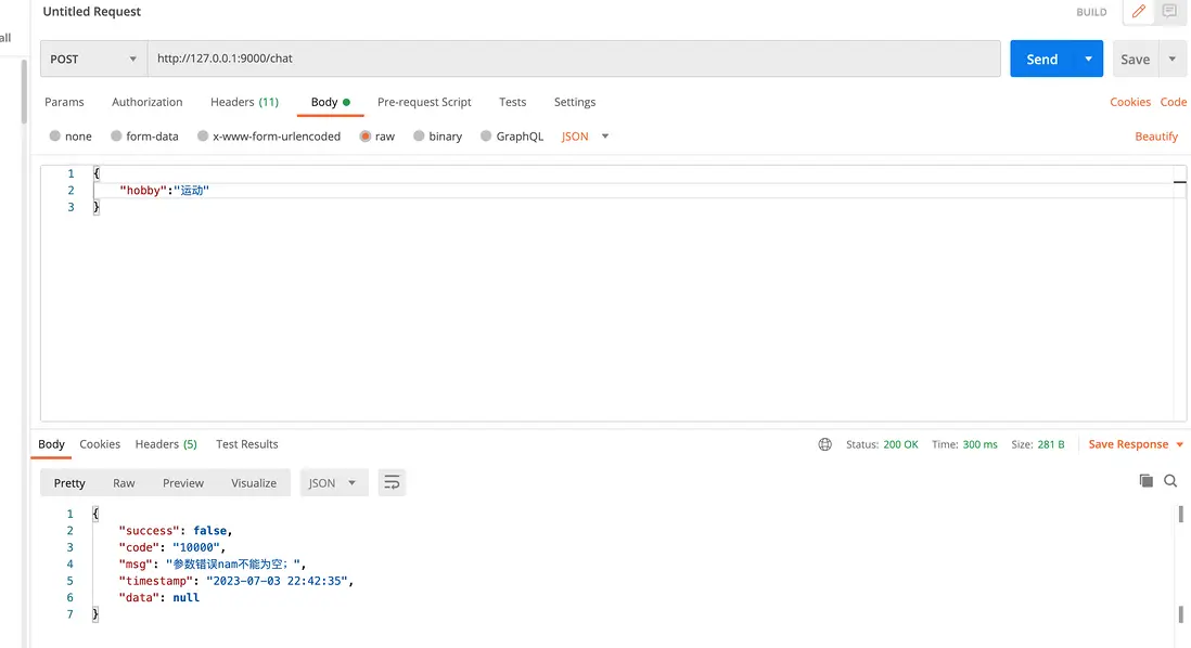 { "previousPage": 1, "nextPage": 1, "pageSize": 1, "totalPageSize": 1, "hasNext": "false", "success": true, "code": "OK", "msg": "操作成功", "requestId": "D9AMALgkZ6gVfe6Pi0Oh", "timestamp": "2023-07-09 02:39:40", "data": [ { "name": "judy", "hobby": "swing", "age": 18 } ] }自定義返回格式