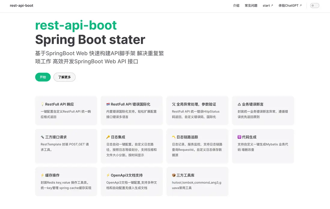 rest-api-spring-boot-starter 適用於SpringBoot Web API 快速構建讓開發人員快速構建統一規範的業務RestFull API 不在去關心一些繁瑣。重複工作,而是把重點聚焦到業務。