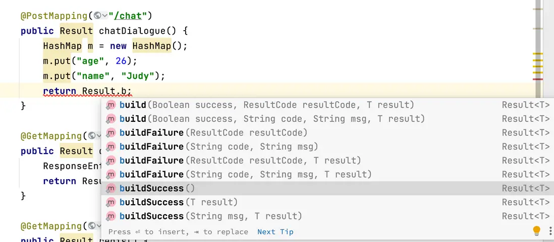 當然如果你這個接口不想包裝成全局返回,想自定義單獨返回 如我們只需要在方法上加上@NoRestFulApi 註解即可