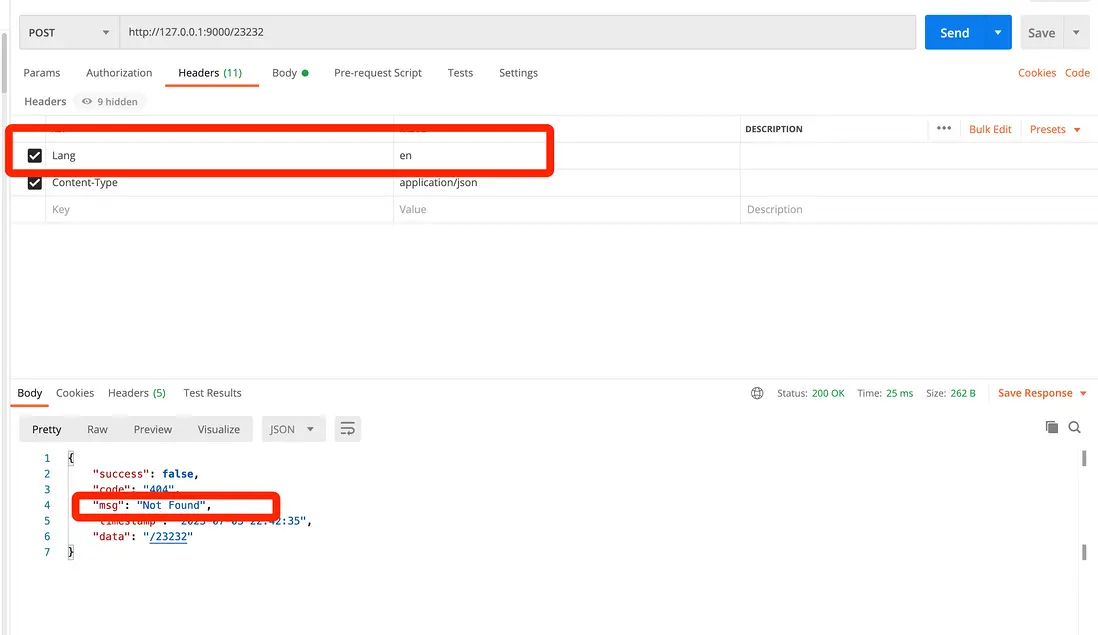 當我傳入 指定語言 就會按照你配置的國際化自定義返回錯誤提示