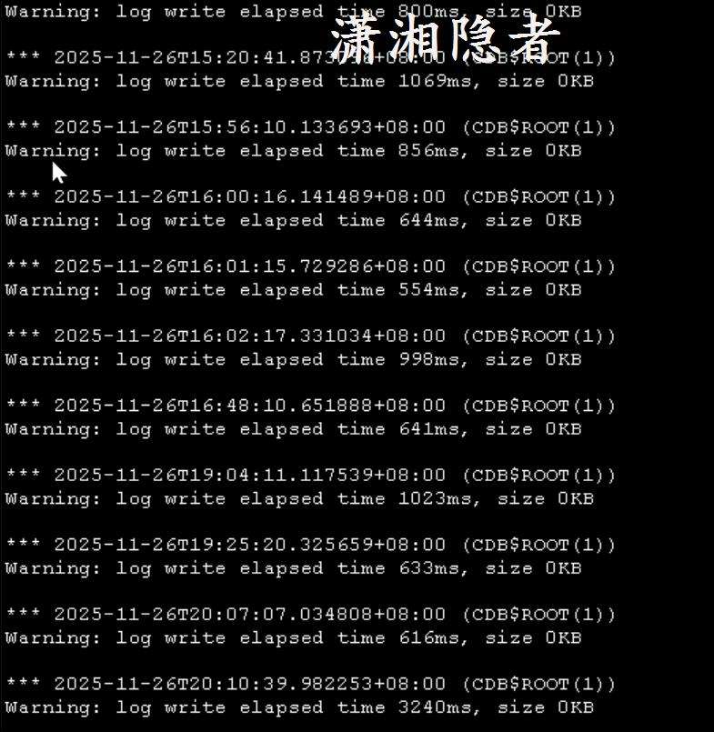 - Zabbix監控服務器的IO性能指標正常.例如指標"Disk write request avg waiting time(w_await)"都在正常範圍內.沒有出現告警。但是查看指標"sdc: Disk write request avg waiting time(w_await)",通過對比分析,發現從2025-11-05開始,這些指標數據(Disk write request avg waiting time(w_await)和Disk write time(rate))就有明顯上升。而數據庫安裝補丁是在2025-11-04日升級的。確實是安裝完補丁後出現的。這個證據是確實無誤的。而且不是個例,如果是個例,可能還有業務增長等各種因素影響。如果不是個例,那麼可以排除這些可能性!