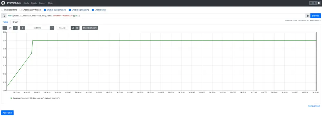 googleBreaker熔斷器的正常請求率如下圖所示: