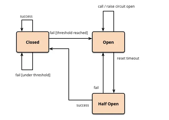 熔斷器內部維護了一個熔斷器狀態機,狀態機的轉換關係如下圖所示: