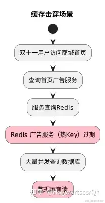 但是假設在這個過程中,這個廣告服務的 key 過期,即這個緩存失效了,那麼就會有大量的併發請求直接打到數據庫中,導致數據庫崩潰。