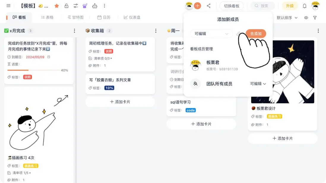 - 任務管理與可視化:板.慄.看.板採用Kanban(看板)模式,能夠將項目任務按狀態劃分,團隊成員可以在看板上清晰地看到每項任務的進展。無論是正在進行的任務、待處理的任務,還是已完成的任務,都一目瞭然。對於跨境電商團隊而言,特別是在多任務處理的情況下,透明的任務管理能大大提高效率。