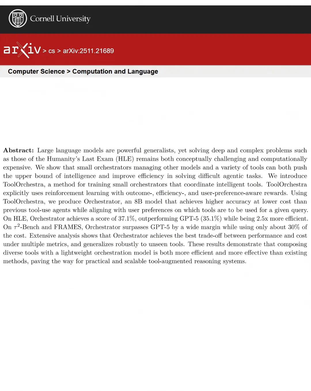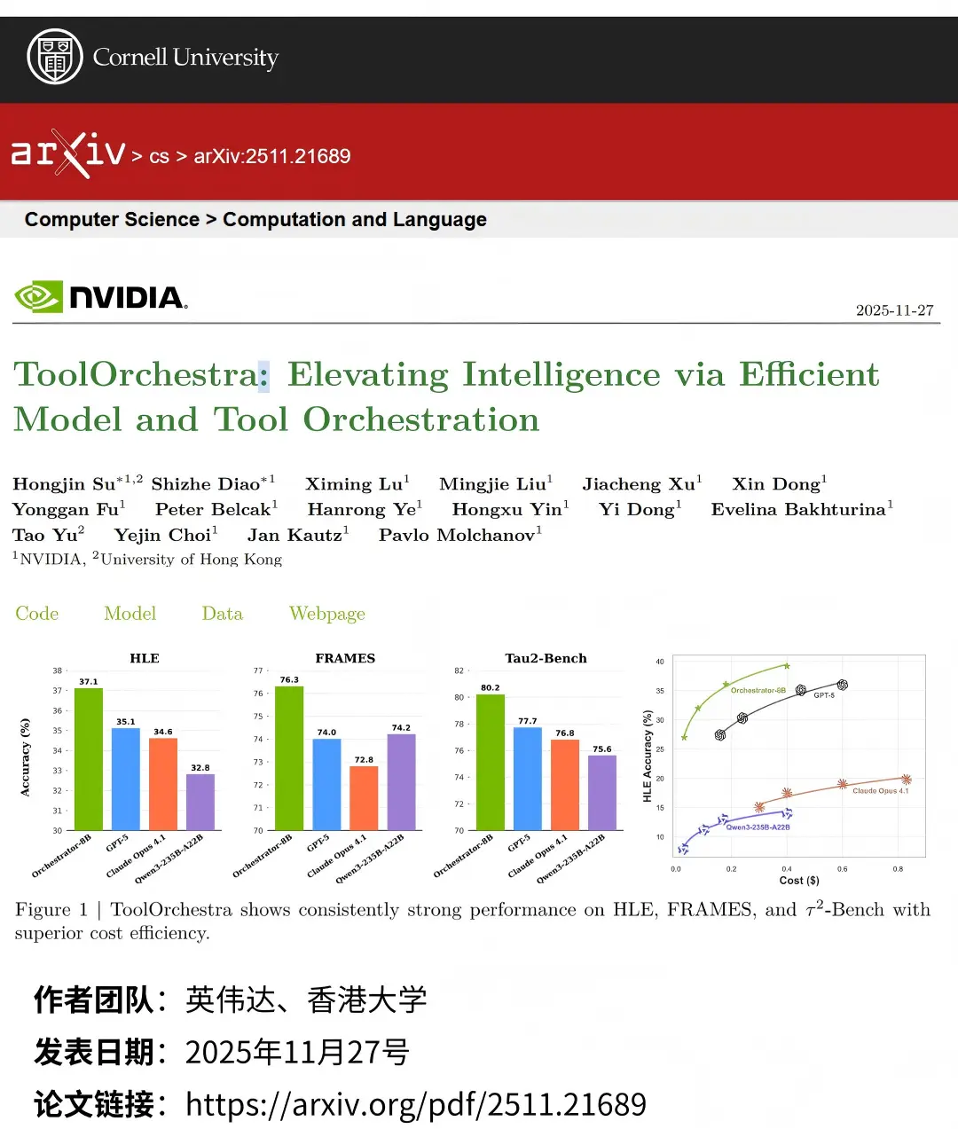 論文標題:ToolOrchestra: Elevating Intelligence via Efficient Model and Tool Orchestration