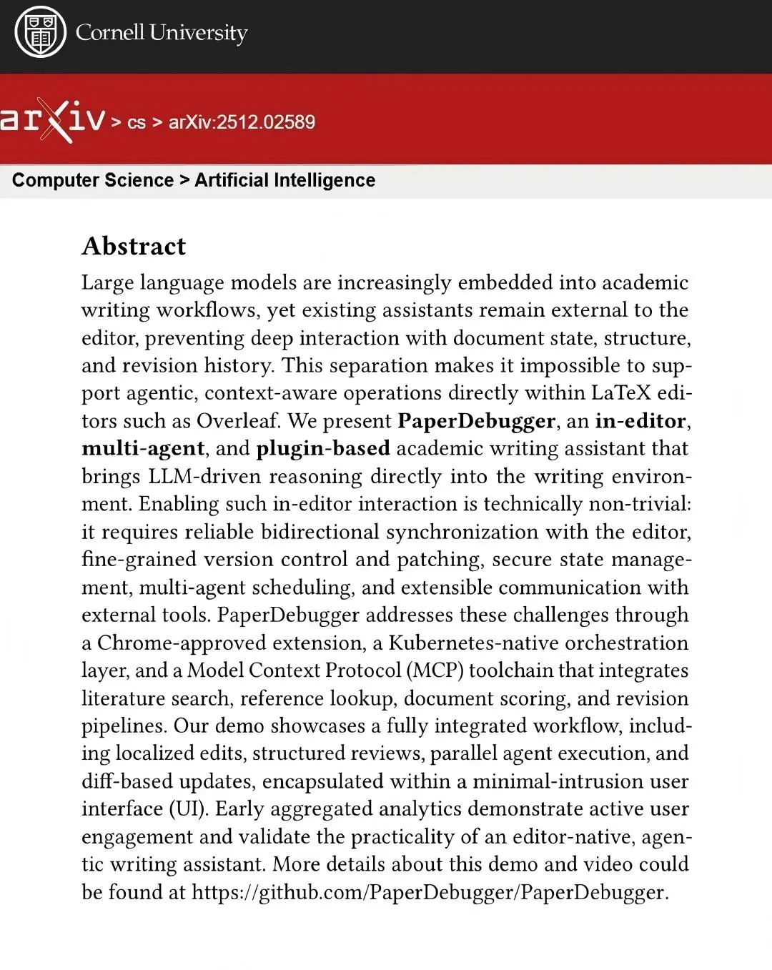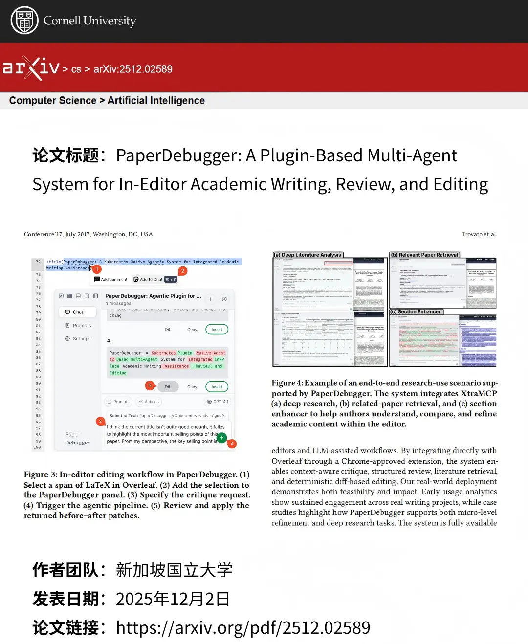 ✔️這篇論文介紹了一個名叫 PaperDebugger 的工具,它就像一個“智能寫作小助手”,專門幫助學者在寫學術論文時更高效。