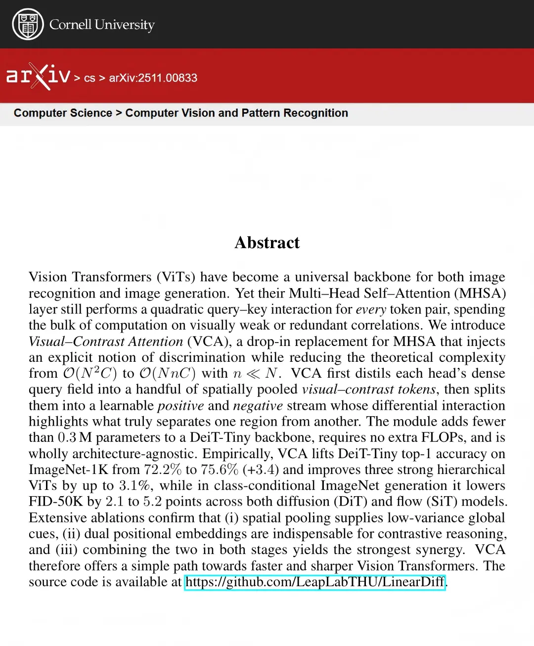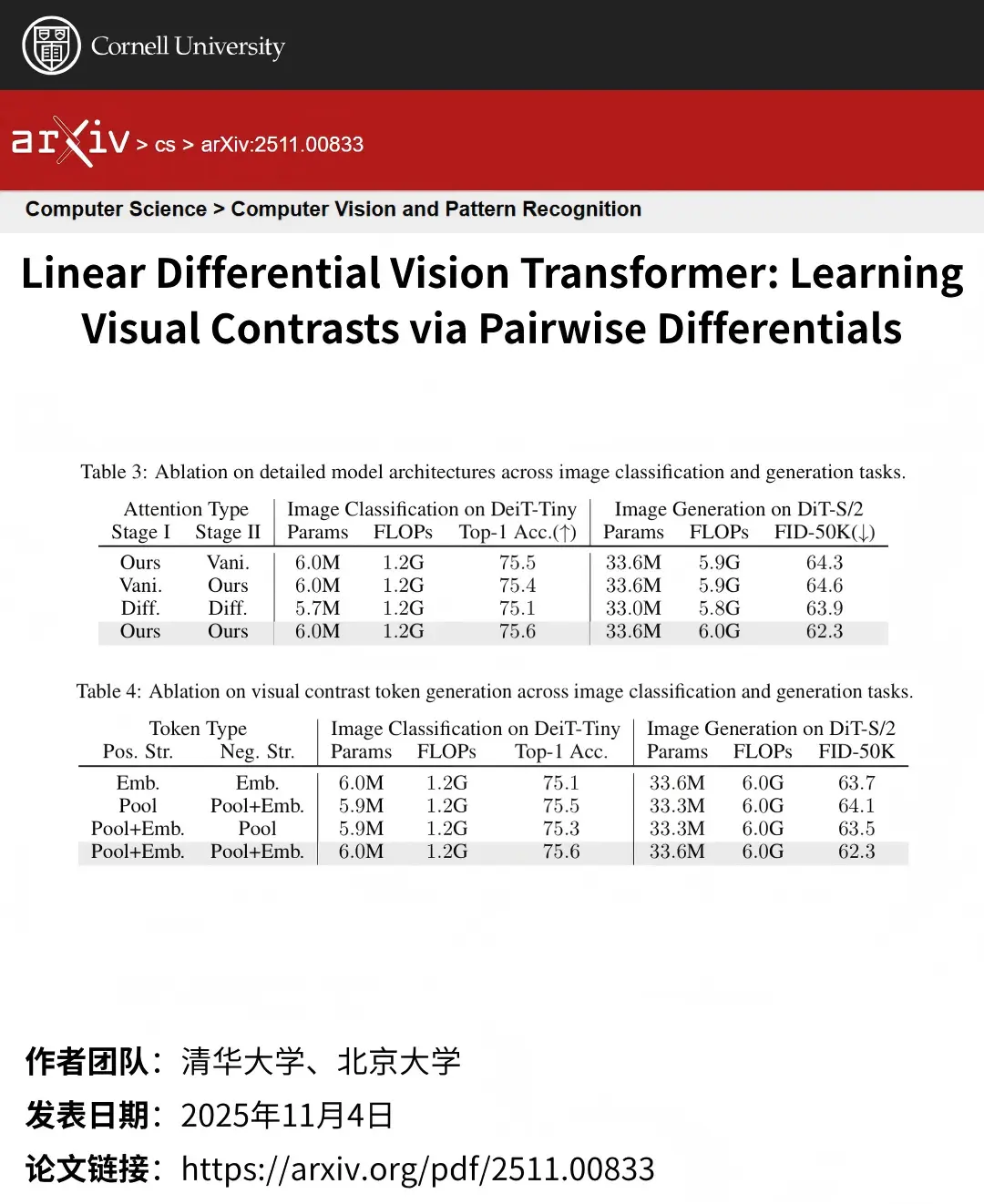 論文標題:Linear Differential Vision Transformer: Learning Visual Contrasts via Pairwise Differentials