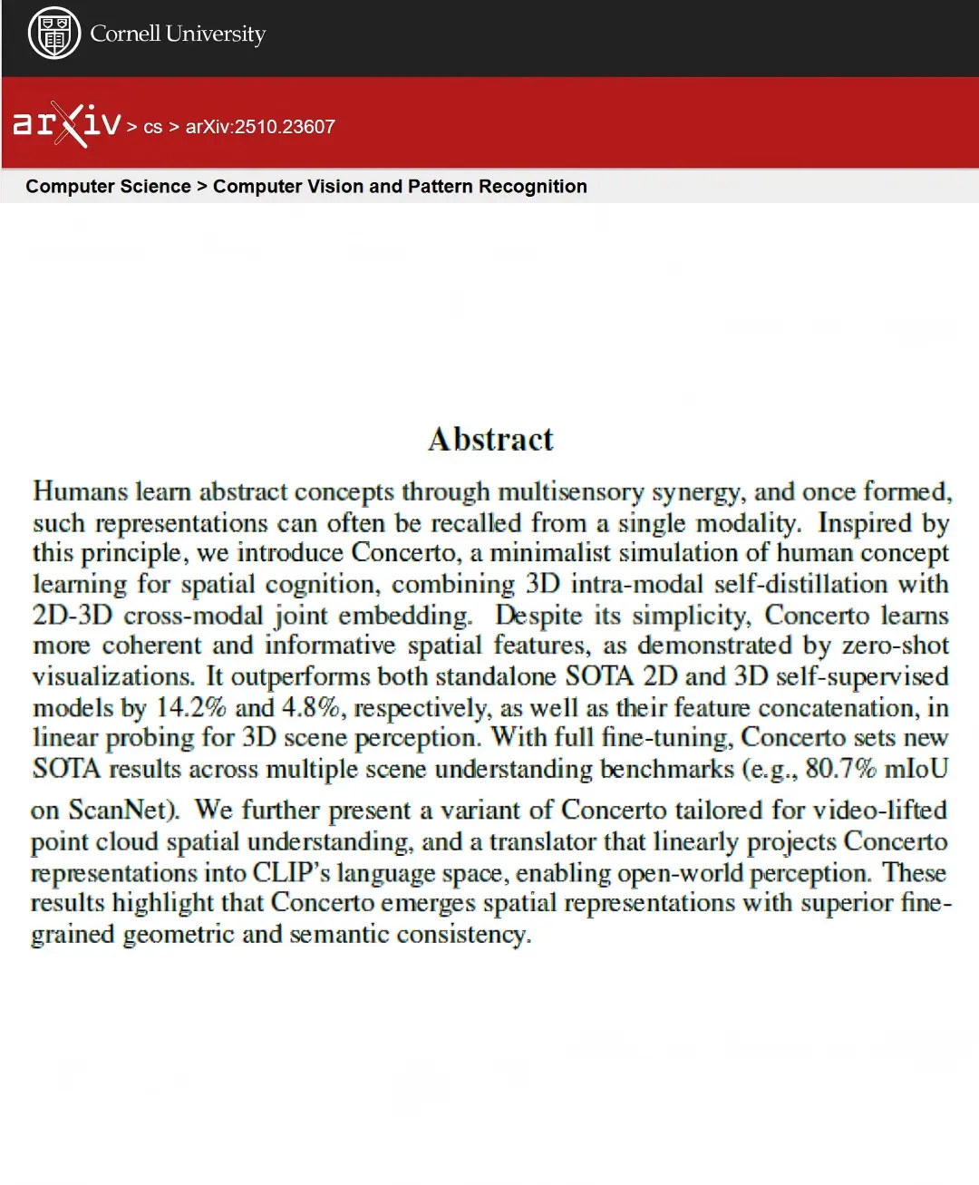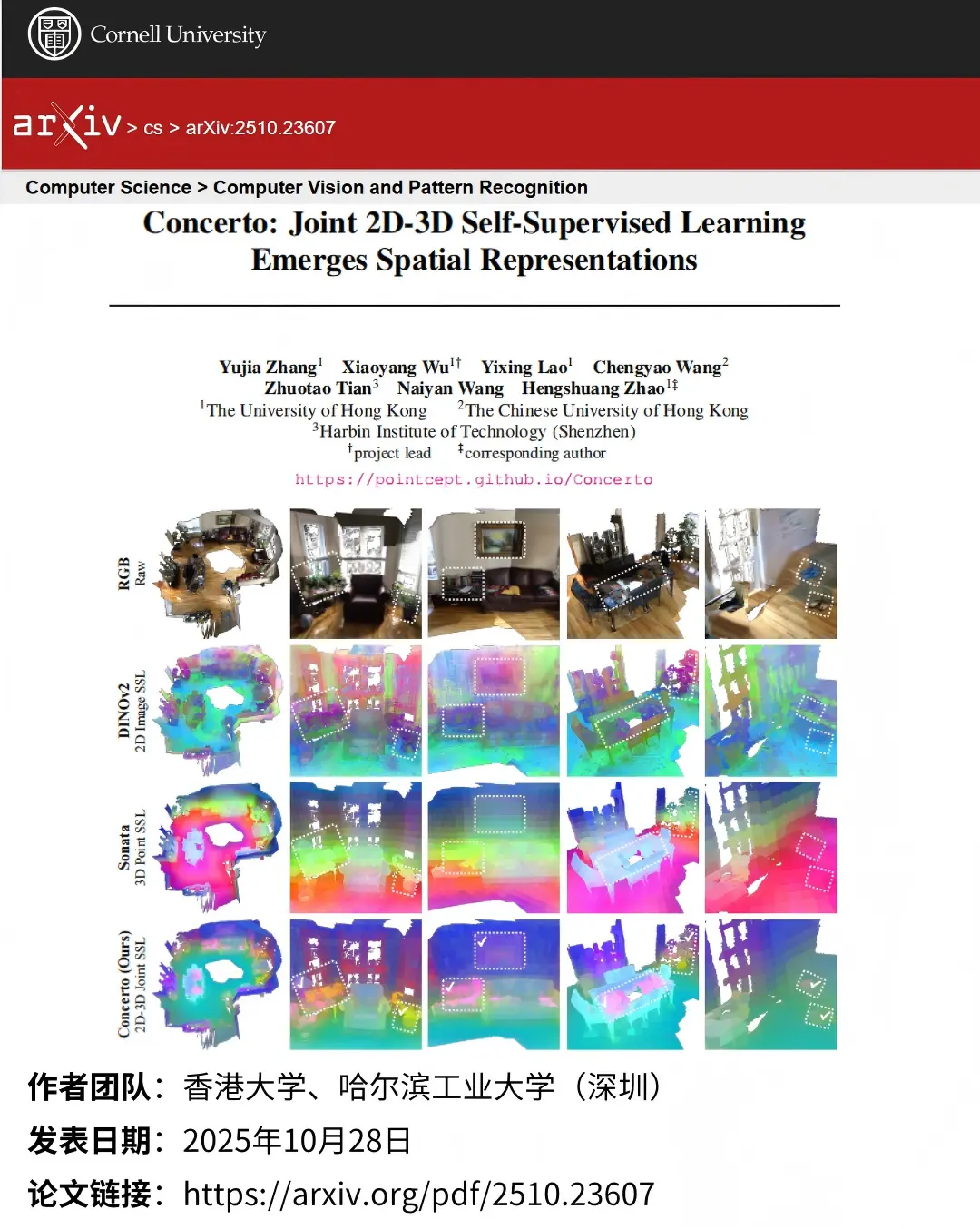 論文標題:Concerto: Joint 2D-3D Self-Supervised Learning Emerges Spatial Representations
