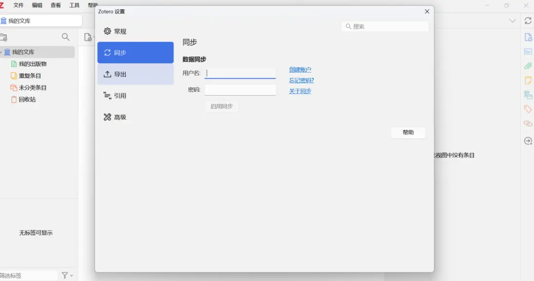 完成下載後,進入Zotero官網註冊一個自己的賬號。點擊Zotero的 【編輯->設置->同步】 就可以完成登錄。