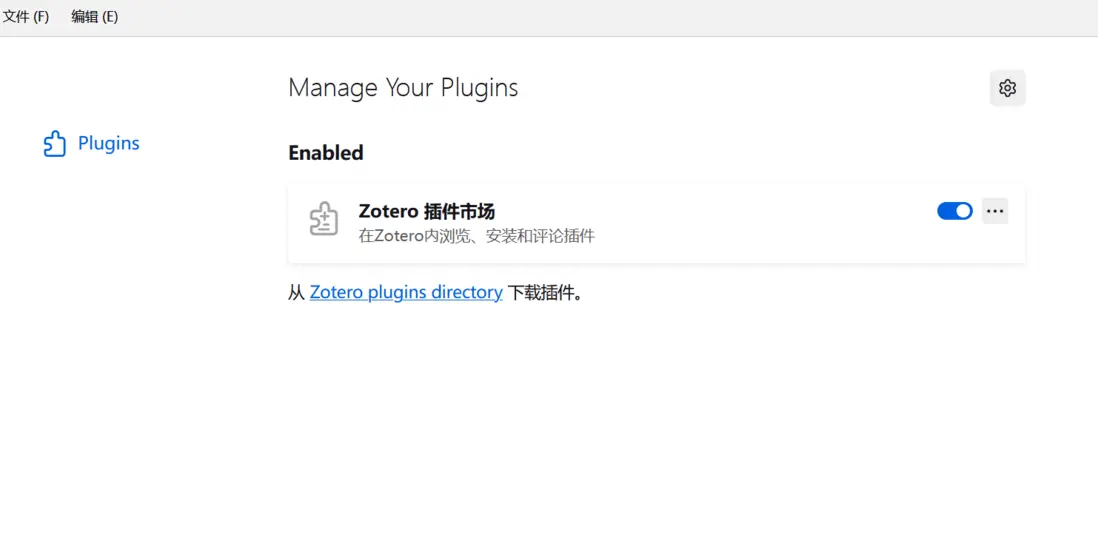打開Zotero的工具->插件,將剛才下載的文件拖進去,隨後您可以看到頁面顯示Zotero插件市場。