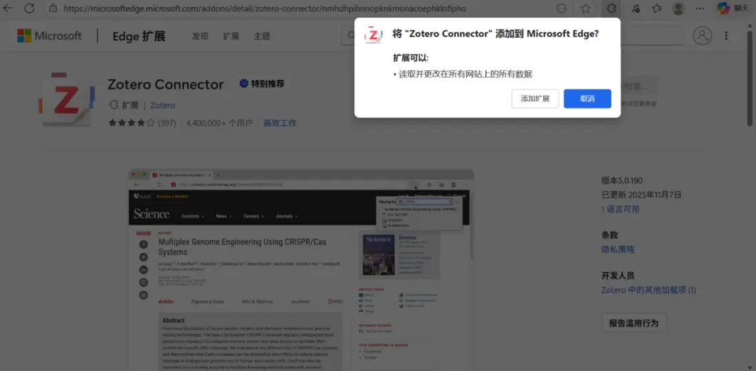 您可以在Zotero官網下載Zotero。下載完成後,會自動跳轉到瀏覽器,提示您安裝Zotero插件。