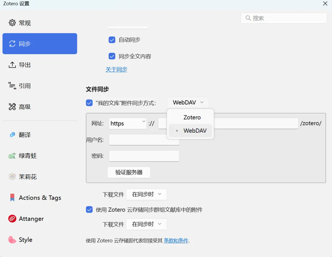 這時候用WebDAV 同步 PDF就是很實用的解決方案,穩定性比單純依賴默認存儲好不少。註冊堅果雲後,跟着網上的關聯教程幾步就能設好,它給的免費空間比Zotero 默認的大不少,不用額外花錢擴容,對學生黨和普通科研人來説很友好。